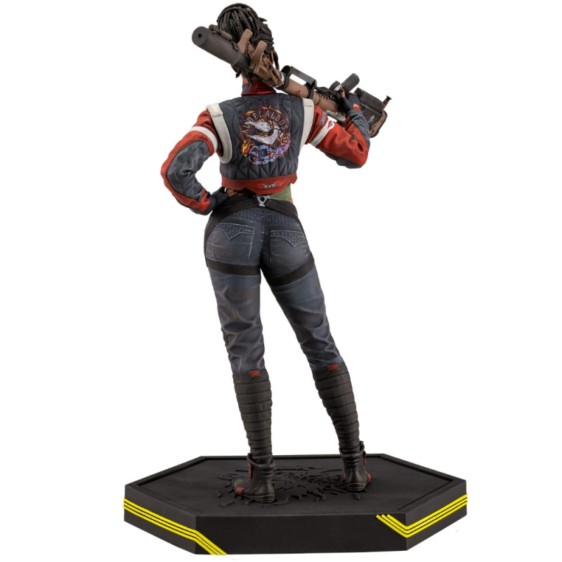 Socha stojí približne 23 cm a pôsobí mimoriadne realisticky vďaka precíznemu spracovaniu detailov – od výrazu tváre až po výstroj a postoj. Je súčasťou kolekcie Cyberpunk 2077, pričom spoločný podstavec s ikonickým Samurai symbolom dodáva celej sérii jednotný štýl.