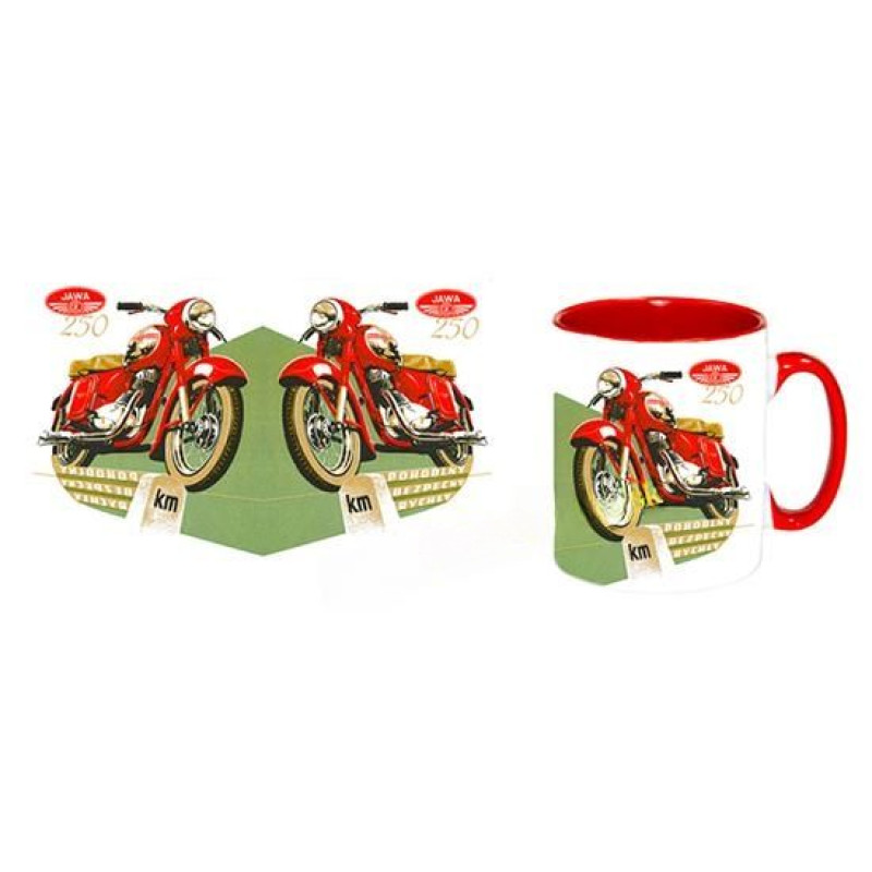 Tento hrnček zachytáva jej ikonický vzhľad: elegantné retro línie, mechanickú jednoduchosť, typickú červenú farbu a atmosféru starých jázd, ktoré si pamätajú celé generácie.